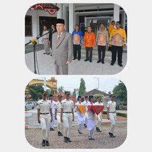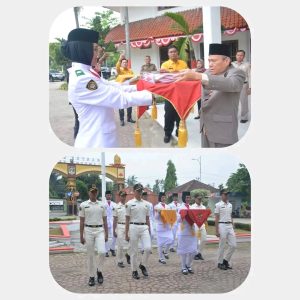 Lampung Tengah:mediaharianexposegelobal.com Pj. Sekretaris Daerah Drs. Kusuma Riyadi, M.M. Menyerahkan Bendera Duplikat Kepada pasukan pengibar bendera sang merah putih Kab. Lampung Tengah Tahun 2024.Di Halaman Pemda Lampung Tengah, Jum’at (16/08/2024).
