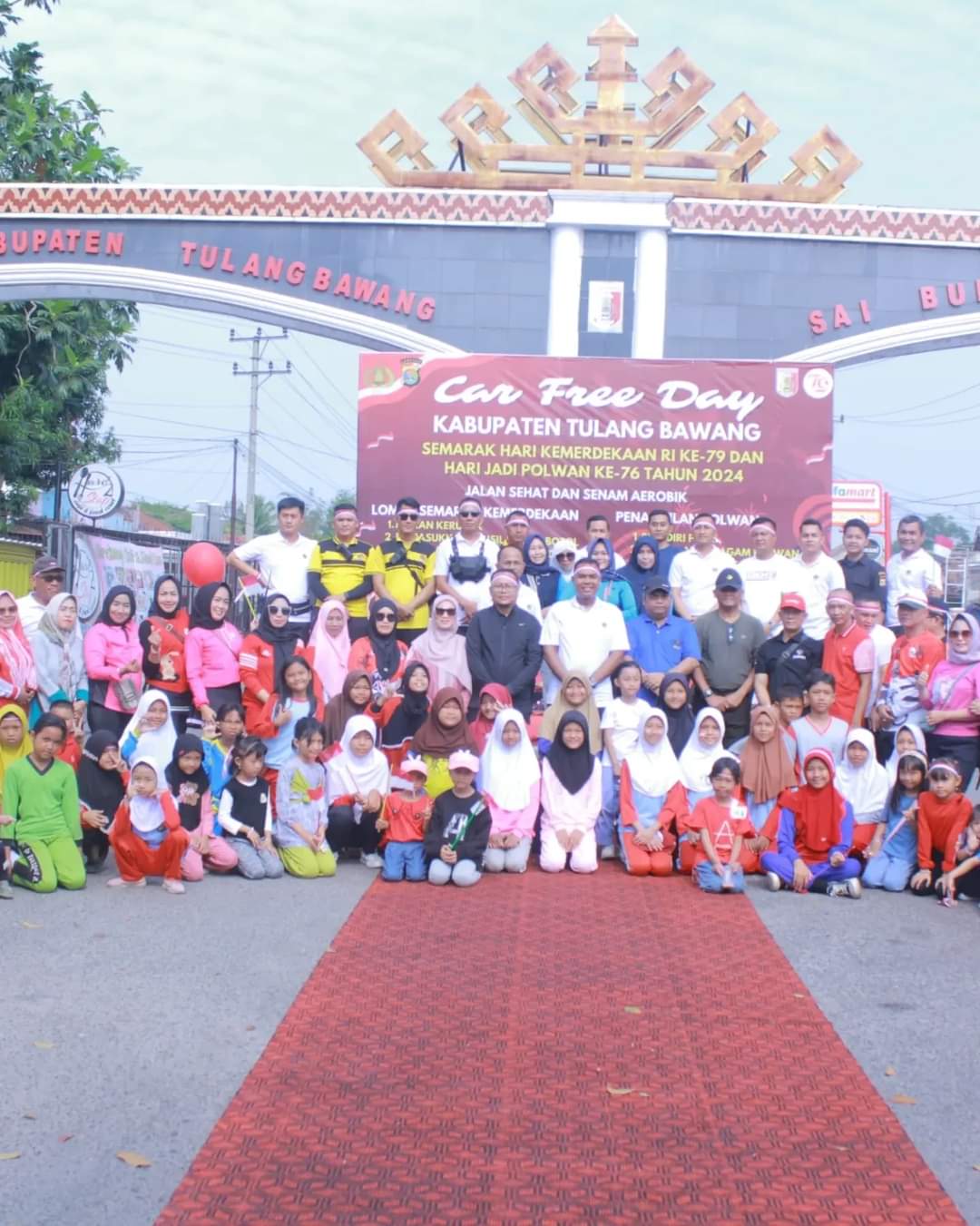 Tulang Bawang -mediaharianexposegelobal.com Pj Bupati Tulang Bawang Ir.Ferli Yuledi.,SP.,MM.,MT yang dalam hal ini di wakili oleh Pj Sekdakab Tuba Haryanto.S.E.,M.Ec.Dev Memberikan Sambutan & Mengikuti Car Free Day di Gerbang Pintu Masuk Jalur Kantor Pemda Tulang Bawang .