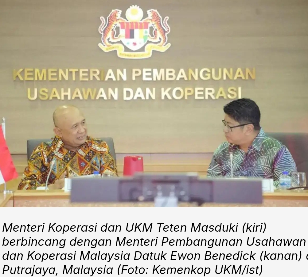 Kesepakatan tersebut dicapai dalam kunjungan Menteri Koperasi dan UKM Teten Masduki ke malaysia. Teten bertemu Menteri Pembangunan Usahawan dan Koperasi Malaysia Datuk Ewon Benedick di Putrajaya.