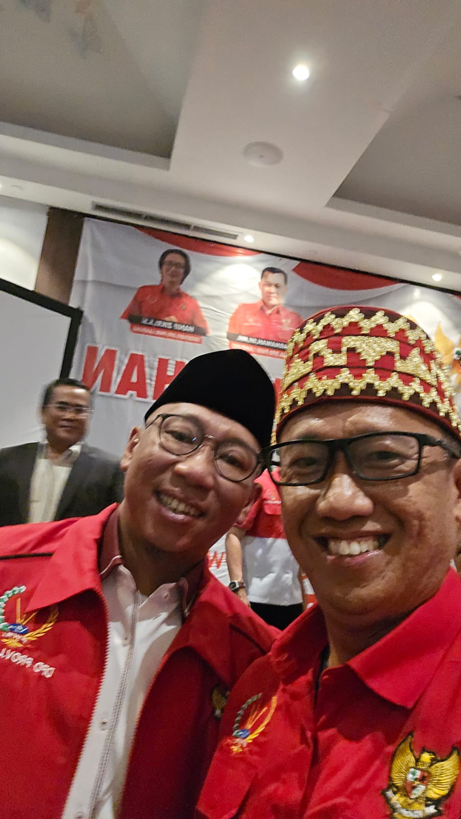 Dewan Pembina DPD PWRI (Persatuan Wartawan Republik Indonesia) Provinsi Lampung Rahmat Mirzani Djausal, S.T., M.M yang turut menghadiri acara tersebut terlihat asyik berswafoto bersama para tamu undangan.