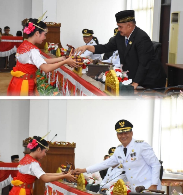 Pada hari ini Senin (03/03/2025), Bupati Tulang Bawang Barat Ir.Novriwan.S.P didampingi Wakil Bupati Tulang Bawang Barat Nadirsyah menyampaikan Pidato Perdananya Pada Dapat Paripurna Dalam rangka mendengarkan Pidato Sambutan Bupati Tulang Bawang Barat Masa Jabatan Tahun 2025-2030 bertempat di Gedung Paripurna DPRD Kab.Tulang Bawang Barat.Rapat Paripurna dipimpin oleh Ketua DPRD Busroni. S.H, didampingi Wakil Ketua I DPRD Ponco Nugroho.S.T, Wakil Ketua II DPRD S.Joko Kuncoro.S.Ikom, dihadiri Anggota DPRD, Bupati Tulang Bawang Barat Ir.Novriwan,S.P, Wakil Bupati Tulang Bawang Barat, Sekretaris DPRD Tulang Bawang Barat Rudi Riansyah. S.E, M.M, Susanto, Asisten Setda Tubaba, Staf Ahli Bupati,Tokoh Masyarakat,Kepalo Tiyuh,Bank,Perangkat Daerahdan Lainnya.