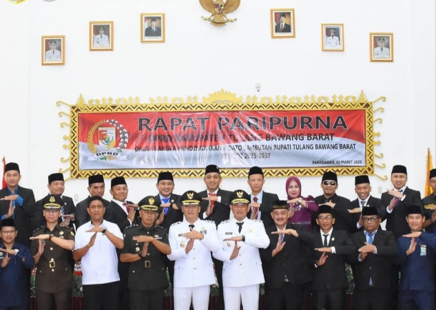 harianexposegelobal.com-DPRD Tubaba- Dewan Perwakilan Rakyat Daerah Kabupaten Tulang Bawang Barat menggelar Rapat Paripurna DPRD Dalam rangka mendengar Pidato Sambutan Bupati Tulang Bawang Barat Masa Jabatan Tahun 2025-2030 Kabupaten Tubaba,Yang berlangsung di ruang Rapat Paripurna DPRD Tulang Bawang Barat, Senin(03/03/2025).