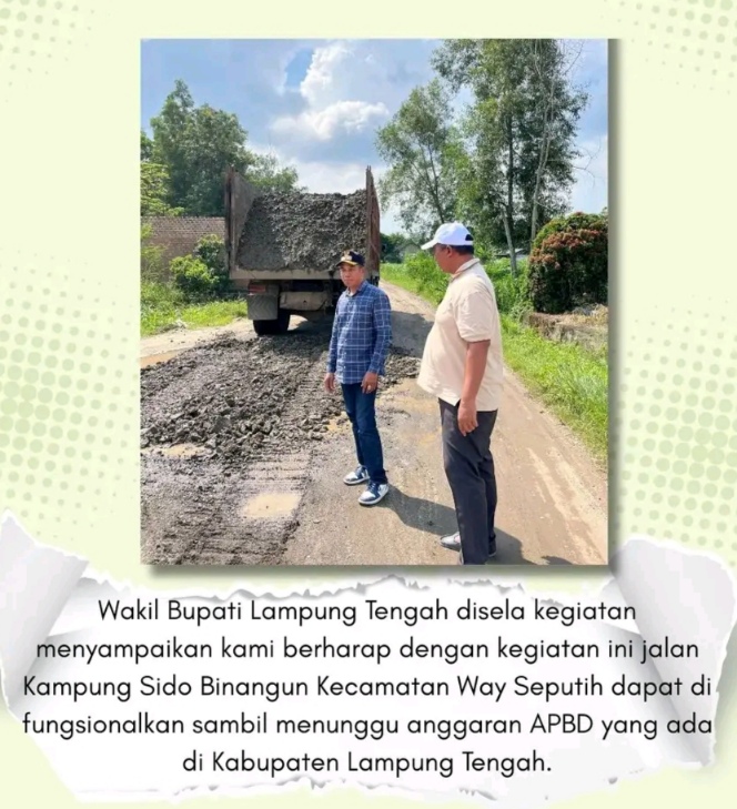 “Insyaallah, tahun 2026 kami akan kembali fokus ke pembangunan jalan. Mohon masyarakat bersabar dan tetap menjaga situasi yang kondusif, karena perlahan tapi pasti, janji politik kami untuk infrastruktur mantap akan kami wujudkan,” demikian Wakil Bupati Lampung Tengah menutup. (Red)